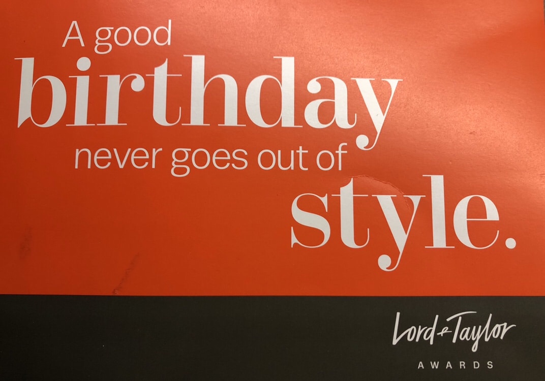 Throughout the year, I buy from the national retailer Lord & Taylor. Given the frequency, the company sent me a card wishing me a Happy Birthday with a $10 award. I was delighted to receive it, especially the unexpected money off for my future purchase. I was happy until I looked at the card more closely, which indicated that “I am required to bring the offer in-store (not online) to use with my Lord & Taylor credit card.” I do not have their card nor do I plan to get one. So, in other words, the company gave me a birthday offer on a contingent basis. That is not what gift giving is all about! From the experience, I became skeptical of the retailer’s intention and somewhat distrusting. While $10 is not a lot of money to be disappointed about, it was the principal of my conditional birthday “gift” that bothered me, and it left a lasting impression.